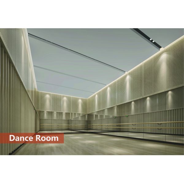 A:Our perforated acoustic panel can be installed on the wall and ceiling, and the wall can be installed with wood slat install method, keel systems install method and hanging keel system installation. The ceiling can use the exposed ceiling system,tegular ceiling system and concealed ceiling system.